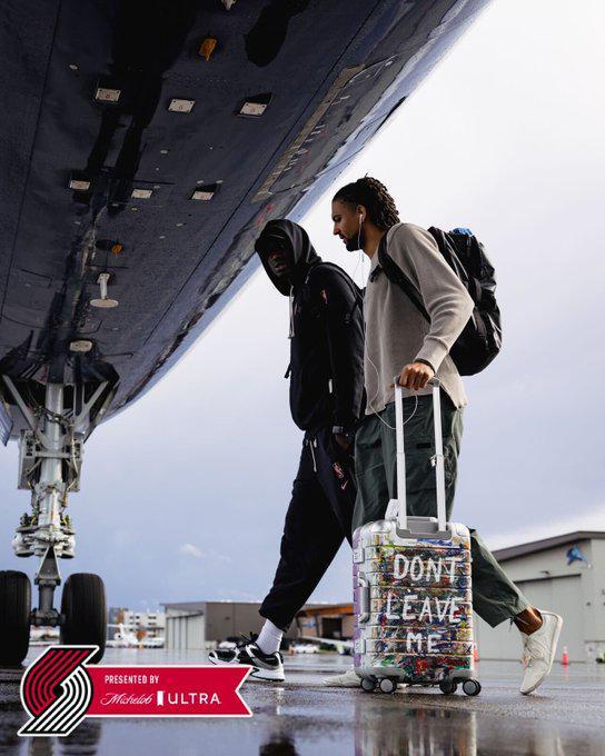 开拓者官方社交媒体今天分享球队出发照,杨瀚森出镜。